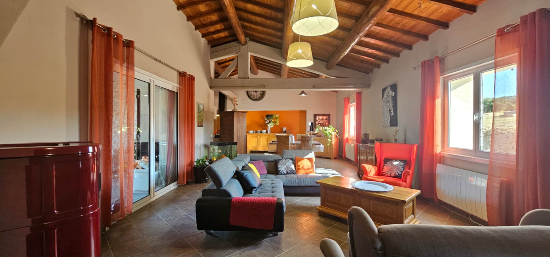 • Pièce de vie : 65 m² avec un plafond cathédrale et des menuiseries haute performance.