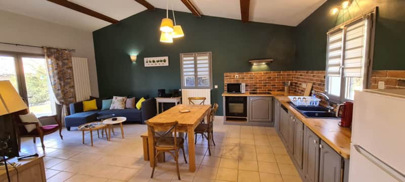 • Jardin privatif de 120 m² pour chaque gîte, avec terrasse et mobilier de jardin.